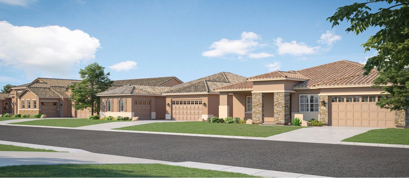 Destiny is a collection of new single-family homes for sale at the Asante masterplan in Surprise, AZ. With four floorplans available including a Next Gen® design ideal for multigenerational households, Destiny has something for every lifestyle. Onsite amenities include a playground, baseball and soccer fields, a basketball court, park and greenbelt. Nearby attractions such as White Tank Mountain Regional Park, plenty of local golf courses, Surprise Stadium where spring training takes place and the Surprise Aquatic Center are just a short drive away for weekend enjoyment. Easy access to Loop 303 makes getting around the area and commuting simple. The community's homes offer: office/study/flex room,covered patio,high ceilings,blinds included,gas cooktop,water softener loop included.