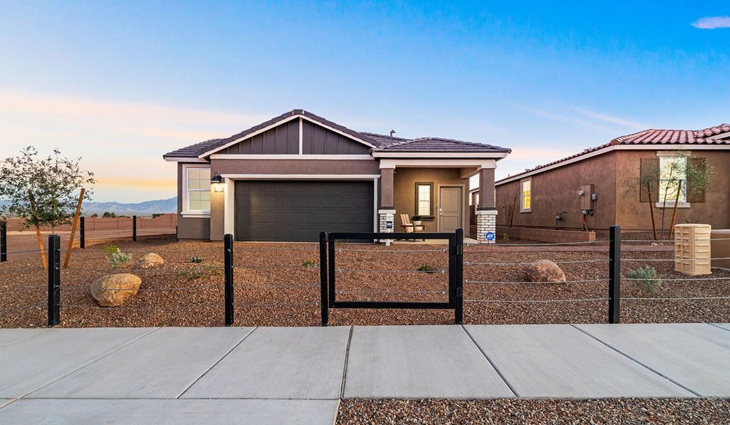 Our homes at Entrada Del Toro are designed with the future in mind. Homes feature Spanish lace stucco exterior, landscaped front yards with auto drip irrigation, and large backyards that are fully fenced and ready for your personal touch. Covered front porches and back patios offer the perfect spots to unwind and enjoy Sahuarita's breathtaking views. Entrada del Toro homes are equipped with Connected® Smart Home packages that include a smart thermostat, video doorbell, keyless entry, and a WiFi® enabled garage door opener.
