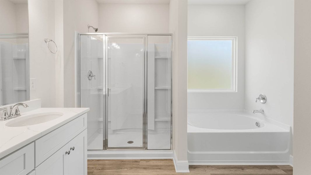 As you drive down the neighborhood on the Tradition side, you will see each home featured with beautiful Hardie Plus siding, and on the Express side you will see each home with durable Vinyl siding. All homes are equipped with dimensional shingles with a 30-year warranty, and fully sodded yard with beautiful green grass. You will also see sidewalks on every street to enjoy the sunset views, streetlights, and mailboxes for the community.
