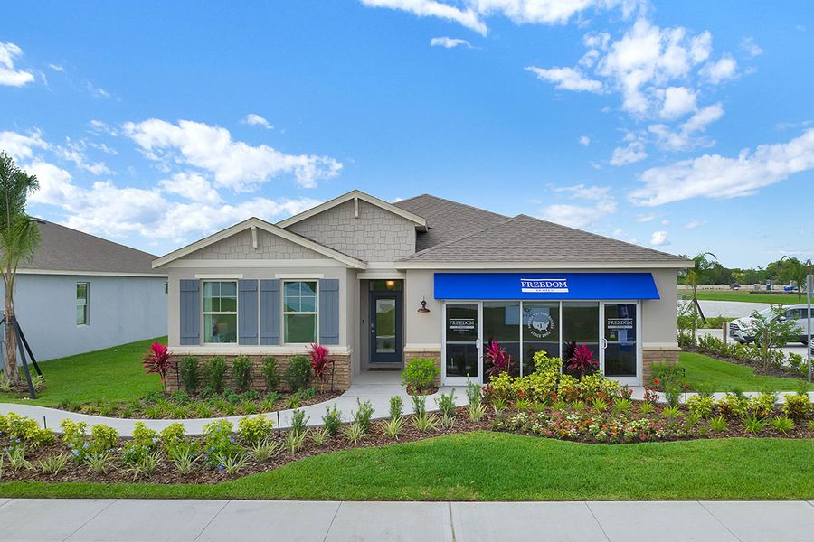 Our beautiful D.R Horton, Express and Freedom homes are smartly designed with you in mind. These easy living floorplans featuring one- and two-story layouts, sleek features, stainless steel appliances, stylish cabinetry, ceramic tile flooring, professional landscaping and Home Is Connected smart home technology. Relax outdoors and enjoy the breeze while you sip your coffee under your rear covered lanai, built in select homes. Beautifully landscaped streetscapes and serene ponds throughout the community provide an ideal setting for walks and a sense of peace. Community amenities include sparkling resort style pools and comfortable shaded cabanas.