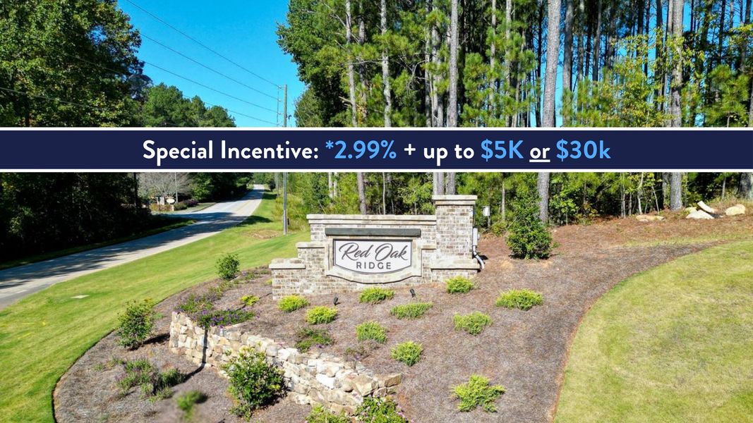 Nestled between HWY 78 and GA-316, Red Oak Ridge is close to shopping and entertainment without the hustle and bustle of city life. Beautifully designed ranch and 2-story homes with covered front porch options are accented by the professional landscaping. Red Oak Ridge has large 3 and 4+ bedroom floor plans ranging from 2,100 to 2,900 SF. Discover the many amenities this charming community offers, including a cabana, resort-style pool, playground and pickleball courts. It’s the perfect place for your family to live and grow.