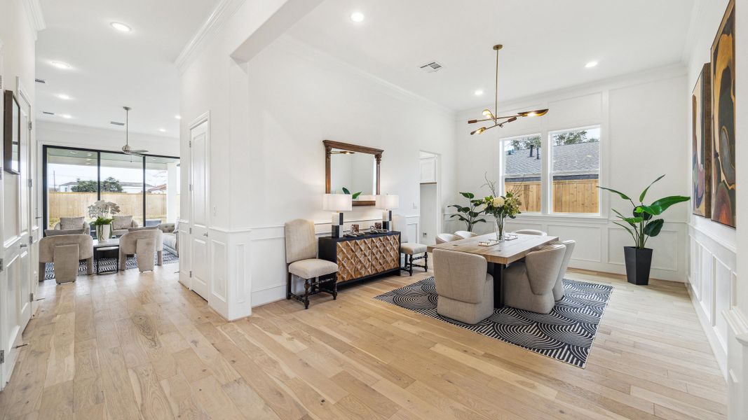 Enjoy roomy first floor living plans with soaring 12-ft ceilings, 10-ft tall glass sliding trifold doors in living area, private dining spaces, modern electric or gas log fireplaces, boutique style closets, and so many other luxe upgraded features. The gorgeous chef’s kitchen features upgraded stacked cabinets, imperial white marble finishes, and luxurious Fisher Paykel stainless steel appliances.