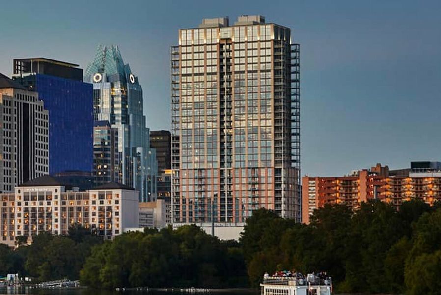 Town Lake Residences condo development is a 32 story highrise built right on the shores of Town Lake and overlooking the downtown skyline. The building features 148 private living spaces ranging from 900 to 5500 square feet. All units have 10-foot ceilings and balconies with terrific views of the lake, downtown Austin, and the hills to the west. Residents have access to the full range of Four Seasons amenities and services including room service, concierge, housekeeping and valet parking. There is also a rooftop pool and garden, a library, shared entertainment and dining areas, a fitness center and a spa.