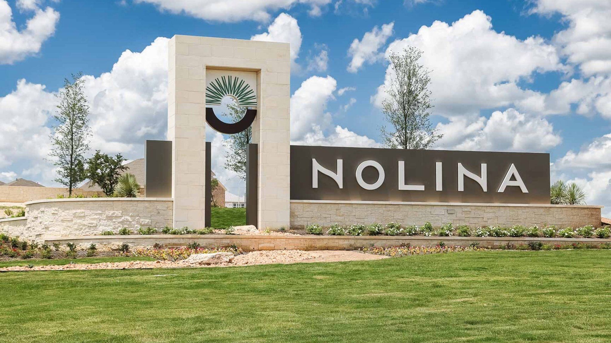 Entrance to the Nolina community in Georgetown, TX, featuring signage and landscaping (Image 1).