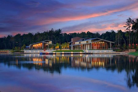 Winding trails lead through the park and along the 5-acre lake to the Amenity Center, where you can paddleboat, work out at the FitCenter, enjoy a meal at the Palate Café, or socialize at community events.