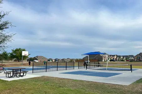 For pet owners, the community dog park provides the perfect space for four-legged family members to run and play. Those looking for friendly competition can take advantage of the pickleball courts, ideal for both single and doubles play, with shaded areas for spectators to relax and cheer on their friends and family.