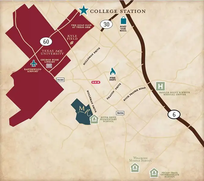 Mission Ranch is conveniently located in College Station. Shopping destinations, schools, emergency services, and Kyle Field are all within 5 minutes.