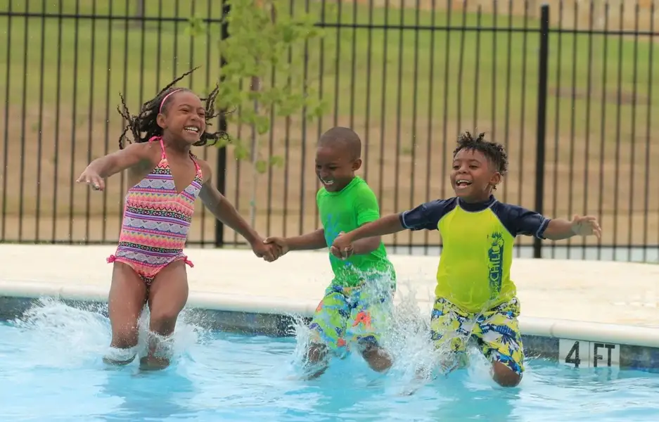 Slip and slide the day away in one of our two beautiful, resort-style swimming pools or relax under one of the many shade pergolas with friends while watching the kids run around in the splash pad.