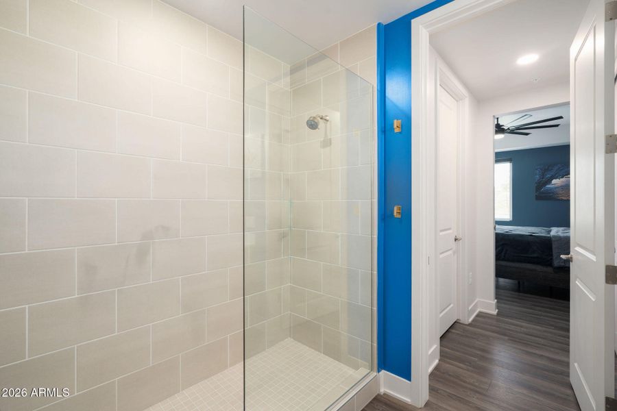 Thoughtfully enhanced throughout, the home includes powered window coverings, ceramic window tint on every window, custom ceiling fans in every room, designer pendant lighting, accent walls, TV-ready wall outlets, washer and dryer, reverse osmosis system, water softener, Ecobee thermostat, fingerprint entry lock, Ring doorbell, and a professionally coated epoxy patio. Buyers can enjoy all of the benefits of new construction without the additional expense, hassle, or wait for post-closing upgrades. Enjoy resort-style amenities including a heated pool, lap pool, fitness center, resident lounge, and 2 gated garage parking spots.