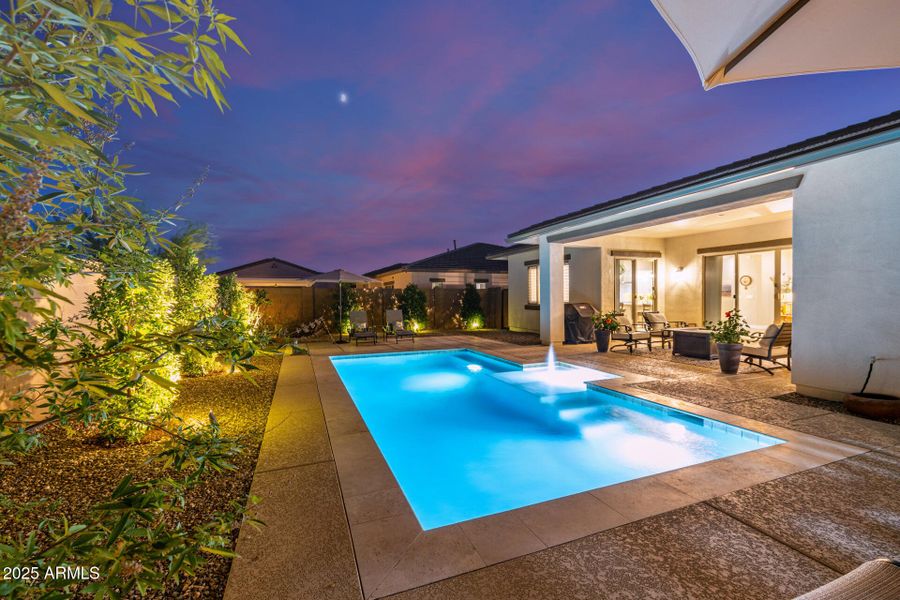 Enjoy true resort-style living in the backyard oasis, complete with a heated swimming pool, pool security door system, lush trees and plants with irrigation and rock, and a private fenced courtyard. Perfect for year-round living or as a lock-and-leave retreat, this home includes modern comforts such as a Vivint Security System, soft water and reverse osmosis systems, epoxy garage floors and added insulation for energy efficiency. Close to TSMC, Shopping, dining, Golf, hiking, nationally ranked charter schools and 303 Fwy this stunner is ready for you to make it home!