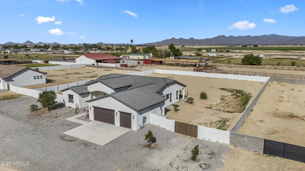 Your dream retreat is HERE. This luxury custom home near Verrado delivers freedom, privacy, and high-end living all in one. Enjoy NO HOA, over an acre of unrestricted land, a full RV gate, RV parking, and a Tesla charger ready to go in your 3 car garage - with mini split A/C!!! Inside, every detail shines with 10 ft ceilings, new luxury flooring, water softener with ROI, premium finishes, and true pride of ownership that makes the home feel better than new. Escape the noise and enjoy star-filled nights, peaceful mornings, and wide-open space—yet stay minutes from parks, top-rated schools, shopping, and everything Verrado has to offer. You will LOVE the baby's room :) BONUS - shop at local butcher shop just down the street for locally grown meats!