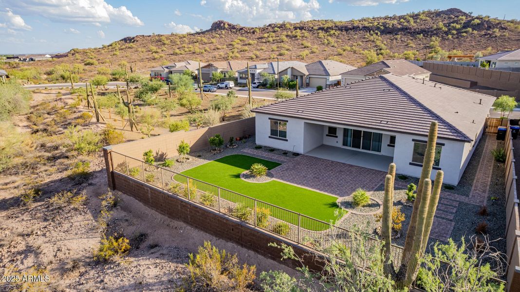 Fantastic corner-lot home with Mtn views in the Sereno! This beautiful residence showcases a contemporary curb appeal with a 3 car garage. The impressive interior boasts a large open floor with clean lines promoting a sleek & functional modern design. Tall ceilings, recessed lighting, tile floors, stylish light fixtures & ceiling fans are worth mentioning. If entertaining is on your mind, the multi-sliding glass doors will make it a bliss, connecting the indoors with the beautifully landscaped outdoors. The kitchen features ample wood cabinets, tile backsplash, quartz counters, SS appliances, and an oversized island. The primary bedroom hosts a cool bathroom with a walk-in closets. 4th bedroom has its own bathroom. No neighbors to the north. south or east of the home. The 4th bedroom has its own bathroom & walk-in closet, making it ideal for overnight guests. The stunning backyard offers a covered patio and a thoughtfully designed landscape, allowing you to focus on hosting fun gatherings or enjoying a relaxing evening. What's not to like? Act now!