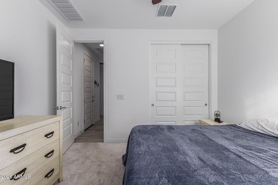 Practically a new home w/ amazing back yard! Built 2024. This beautiful 4 bed, 3 FULL bath residence in Avion at Ballpark Village features a charming facade, a low-care landscape, and a 2 car garage. Inside you will find a spacious great room w/elegant wood-look tile flooring, upgraded ceiling fans, and neutral palette throughout. Gourmet kitchen w/ gas stove, white cabinetry w/crown moulding, a pantry, quartz counters, SS appliances, and a center island w/a breakfast bar. The primary suite boasts soft carpet, a walk-in closet, and a pristine ensuite w/dual sinks. Lastly, the quaint backyard includes a covered patio, artificial turf, and a paver seating area!