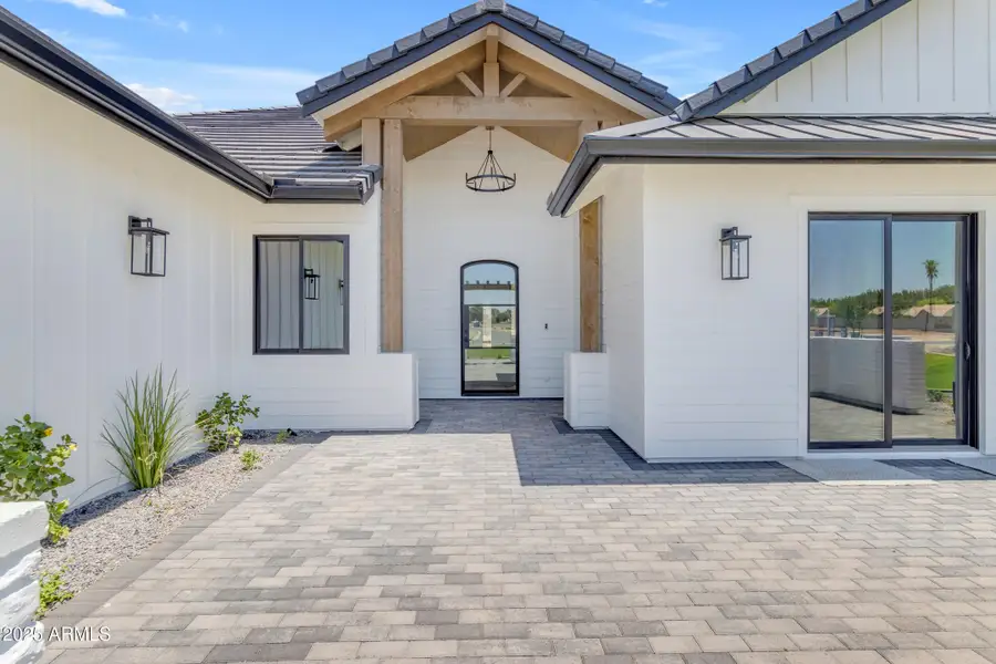 Welcome to this brand new home in the New Cloud Creek community, located in the heart of Queen Creek This luxurious residence boasts 5 spacious bedrooms and 3.5 elegantly appointed bathrooms. Designed with an open concept, 12' ceilings. The home features a gourmet kitchen with quartz countertops, a large island, Custom white oak full overlay cabinets with gold accents, and high-end stainless steel appliances, including a gas Wolf stove. The main bedroom offers ample space for a sitting area and has sliders leading directly to the backyard patio and pool/ hot tub area. These large flood irrigated lots are beautiful with natural grass. Additional highlights include an office/den, a home theatre/bonus room, and pool/hot tub.