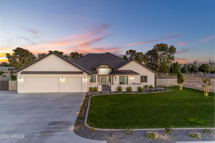Move in Ready!!! Welcome to this brand new home in the New Cloud Creek community, located in the heart of Queen Creek This luxurious residence boasts 5 spacious bedrooms and 3.5 elegantly appointed bathrooms. Designed with an open concept, 12' ceilings. The home features a gourmet kitchen with quartz countertops, a large island, Custom white oak full overlay cabinets with gold accents, and high-end stainless steel appliances, including a gas Wolf stove. The main bedroom offers ample space for a sitting area and has sliders leading directly to the backyard patio and pool/ hot tub area. These large flood irrigated lots are beautiful with natural grass. Additional highlights include an office/den, a home theatre/bonus room, and pool/hot tub.