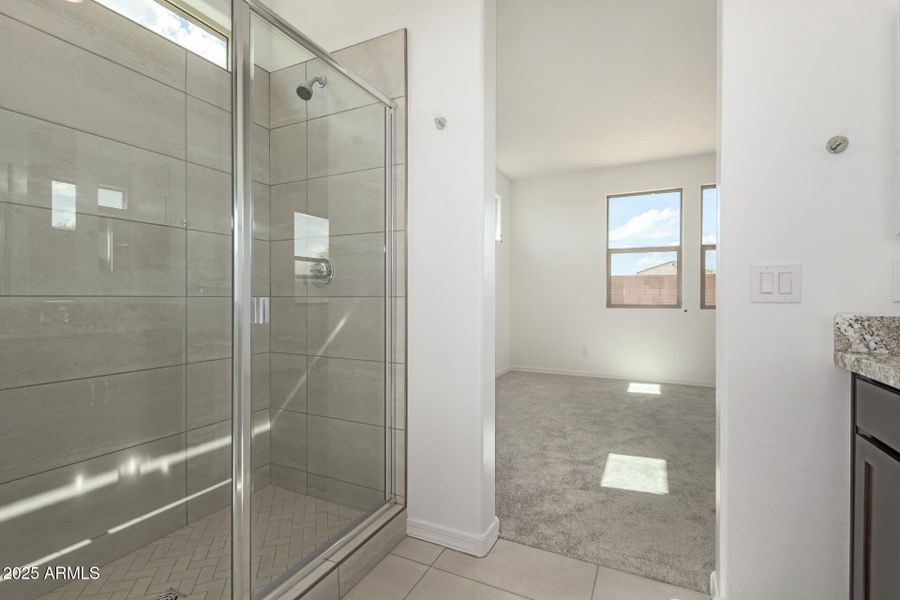 Welcome to this beautiful single-story home offering modern comfort and thoughtful design throughout. With an open floorplan and a premium lot that borders a common area with neighbors on only one side, this home provides both privacy and a spacious feel. The kitchen is designed for everyday living and entertaining, featuring stainless steel appliances including a gas range, Granite countertops, a large walk-in pantry, and plenty of cabinetry for storage. The open layout flows seamlessly into the living and dining areas, creating a bright and inviting atmosphere. The primary suite is a relaxing retreat, complete with an ensuite bathroom featuring a large glass and tile walk-in shower, Granite countertops, a dual sink vanity, and a huge walk-in closet. The secondary bedrooms are... connected by a convenient Jack-and-Jill bathroom with dual sinks, offering functionality and privacy for family or guests. Enjoy outdoor living on the covered patio, overlooking a private backyard that will include a turf landscaping package. Combining open-concept living, upgraded finishes, and a serene setting with minimal neighbors, this home is the perfect blend of style, comfort, and privacy.