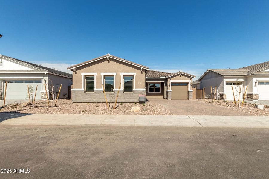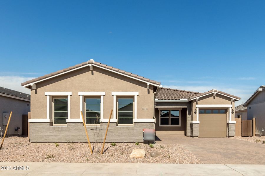 Explore this inspired Townsend home, ready for quick move-in on a homesite boasting front yard landscaping and driveway pavers. Included features: a welcoming covered porch; a gourmet kitchen offering 42" cabinets, quartz countertops, stainless-steel appliances and fixtures, a roomy nook, a walk-in pantry and a center island; an expansive great room; a lavish primary suite showcasing an immense walk-in closet and a private bath with cultured marble countertops; a convenient laundry; a relaxing covered patio; a single-car garage and a 2-car garage. This home also offers ceiling fan prewiring, stone tile flooring and additional windows in select rooms as well as airy 10' ceilings throughout. Tour today!