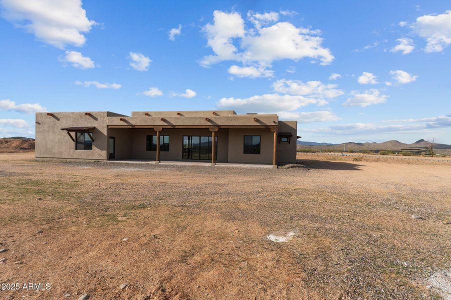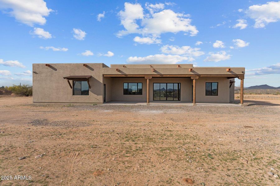 This beautifully designed 2025 custom home offers 2,610 sq ft of living space w/ 4,352 sq ft under roof, on 3.4 acres w/sweeping views of Vulture Peak. A circular driveway welcomes you to a thoughtfully planned property featuring beautifully landscaped grounds w/ new decorative rock, 4 covered horse pens & a large turnout, w/ the option to purchase an additional 4 acres to the south—ideal for expanding your horse setup, adding an arena, shop, or additional improvements.