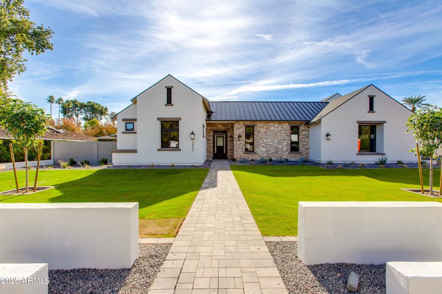 Discover luxury living in ARCADIA PROPER with this stunning NEW Desert Transitional masterpiece by Thomas James Homes. Move in ready, this residence effortlessly merges modern elegance with practical living. Designed on a grand single level, the home boasts 5 expansive bedrooms and 5.5 bathrooms, each bedroom an ensuite with walk in closet. As you enter, you'll be greeted by a thoughtfully designed interior featuring wide plank wood flooring, custom lighting, and a dramatic fireplace that serves as the centerpiece of the living area. An attached casita will serve your guests well. The gourmet kitchen is a chef's dream, equipped with premium amenities and top of the line Wolf Sub-Zero appliances. Complete with a prep kitchen, ample pantry safe, pot filler, warming drawer, and double dishwashers. Beyond the main living spaces, the home includes a versatile bonus room and a cozy den or office space. The outdoor spaces are equally impressive, with meticulously landscaped front and back yards that include a luxurious pool and spa, perfect for enjoying the Arizona sunshine and taking in the views. Situated just minutes from upscale dining, shopping, and entertainment, this residence offers both convenience and an exclusive lifestyle.