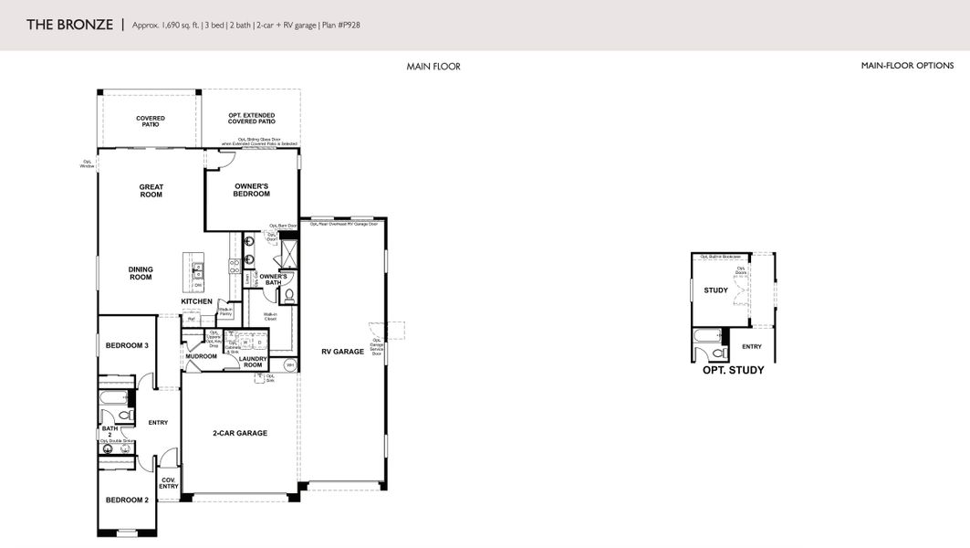 Discover this eye-catching Bronze home, ready for quick move-in! Included features: a covered entry; a well-planned kitchen offering 42" cabinets, quartz countertops, stainless-steel appliances, a center island and a walk-in pantry; an open dining room; a spacious great room with additional windows; a serene primary suite boasting a roomy walk-in closet and a private bath with double sinks; two secondary bedrooms with a shared bath; a central laundry and an inviting covered patio. This home also showcases 9" x 35" stone tile flooring, cultured marble bath countertops, ceiling fan prewiring in select rooms, coach lights, front yard landscaping and concrete pavers at the driveway and walkway. Tour today!