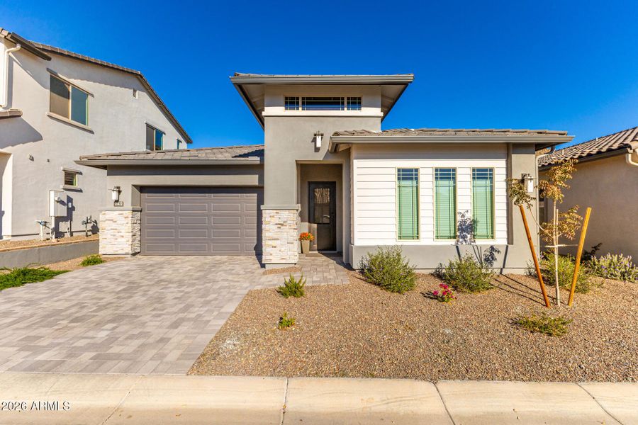 Come See This Stunning Mountain View Home in the gated Verrado Highlands Community and a wonderful opportunity to buy a like new property with tons of upgrades, plus a gorgeous backyard. Why buy new with a dirt backyard, no blinds, no refrigerator, no ceiling fans, and not as nice of a lot, when you can have this beautifully designed home with all the bells and whistles that is ready to move in! Enjoy stunning views of the white tank mountains right on your back patio, plus a classy finished backyard with tons of pavers plus a nice turf to enjoy the backyard while having low maintenance. Step inside to soaring ceilings and enchanting design finishes throughout. The kitchen is very high end and features double stacked cabinetry with crown mold, full height backsplash, quartz countertops and the Gourmet Elite Kitchen package appliances with double wall oven, gas cooktop, exposed stainless range hood, and kitchen aid dishwasher. Tons of natural light make this home extra special with extended length slider for mountain views plus additional clerestory square windows for added natural light. Enjoy 3 spacious bedrooms plus a large den/office that could also be used as an added formal dining room. The primary suite has an extra-large garden tub, plus a floor to ceiling tiled walk-in shower, an extra-large walk-in closet, and his and her vanities. 2 additional large bedrooms with a high end finished jack and Jill bath for privacy make the additional bedrooms feel like suites as well, plus there is an additional half bath for guests. This home feels like a model home and sits on a very desirable lot with stunning mountain views right out your backyard. Enjoy the benefits of a gated community, while also walking distance to the park nearby. Enjoy a dog park, multiple pools, a workout facility, and so much, plus enjoy the fun of the downtown city center close by for all your needs or to grab the meal to go. Come see this one of a kind opportunity before it is gone! Hard to find this quality of finishes on this lot for this price.