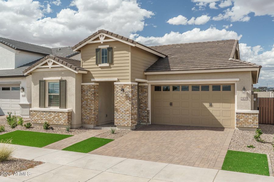 Beautiful single-story home in a sought-after master-planned community near Loop 303 & Waddell. This thoughtfully designed layout offers approx. 1,944 sq ft with 3 bedrooms, 3 bathrooms, and a versatile open study. Enjoy an open great room concept with spacious kitchen, large island, and walk-in pantry--perfect for entertaining. Designed with energy efficiency in mind, featuring high-performance construction and modern features throughout. Community amenities include a resort-style aquatic center and parks, all just minutes from shopping, dining, and entertainment at Prasada Marketplace.