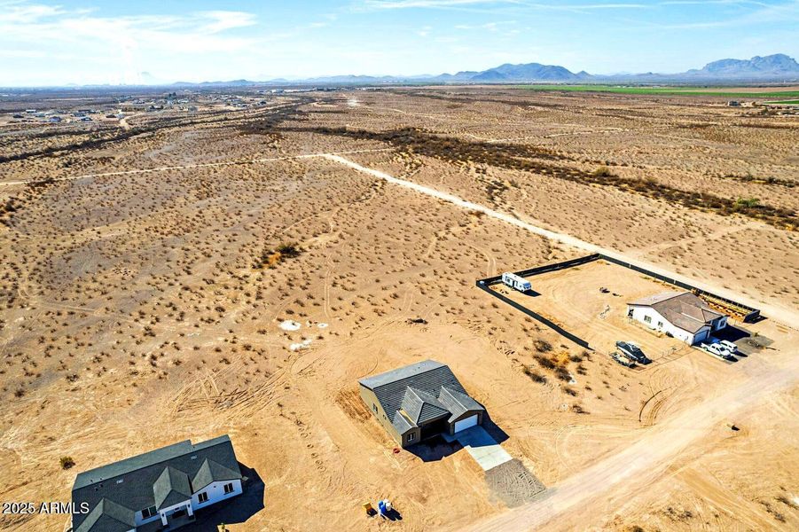 Fantastic Like new construction on a sprawling 1-acre lot! This 4-bedroom residence showcases a captivating open layout with high ceilings, a neutral palette, attractive wood-look flooring, a media nook, and sliding doors that lead to the backyard for seamless indoor-outdoor flow. The delightful kitchen boasts sleek quartz counters, ample white shaker cabinetry, a striking stone-tile backsplash, SS appliances, a walk-in pantry, and an island with a breakfast bar. The primary bedroom offers a private ensuite and a practical walk-in closet. Venture out onto the vast backyard, featuring a covered patio, breathtaking mountain views, and abundant space for crafting your dream oasis or establishing equestrian facilities.