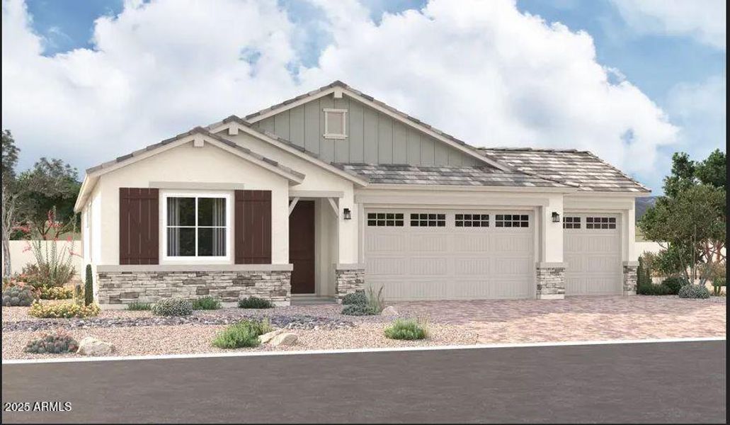 Explore this inspired Agate home, ready for quick move-in on a homesite boasting driveway pavers and front yard landscaping. Included features: a charming covered entry; a versatile flex room; a generous great room; an open dining area; a gourmet kitchen offering 42" cabinets, stainless-steel appliances, quartz countertops, a roomy pantry and a center island; a convenient laundry; a luxurious primary suite showcasing a spacious walk-in closet and a private bath with cultured marble countertops; a covered patio and a 3-car garage. This home also offers ceiling fan prewiring and stone tile flooring in select rooms. Tour today!