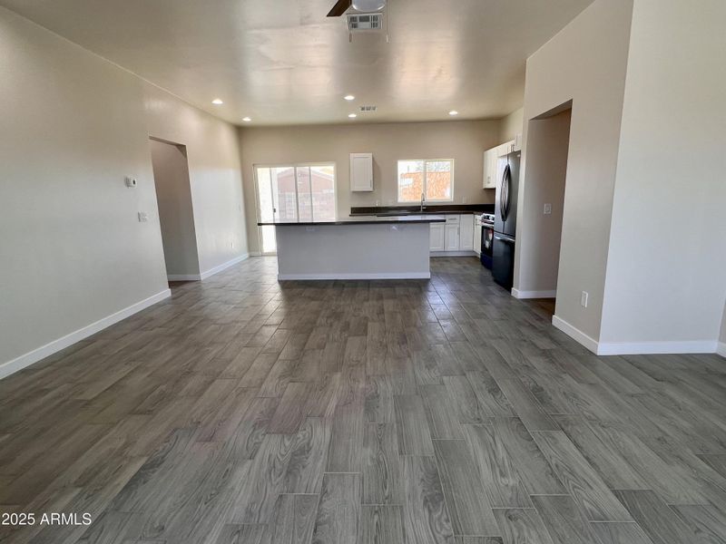 This stunning, brand-new single-story home offers 3 spacious bedrooms and 2 luxurious bathrooms, all thoughtfully designed with modern finishes. The open-concept living area flows seamlessly into a beautiful kitchen featuring white cabinets and a large island, perfect for gathering and entertaining. The entire home is finished with stylish tile flooring, creating a sleek, cohesive look throughout. Both bathrooms are equipped with elegant quartz countertops and contemporary tiled showers. A neutral color scheme throughout provides a versatile and inviting atmosphere. The home sits on a large lot, complete with a generous front yard and an RV gate for added convenience. The 2-car garage is enhanced with durable epoxy floors, offering both practicality and style. Don't miss out!