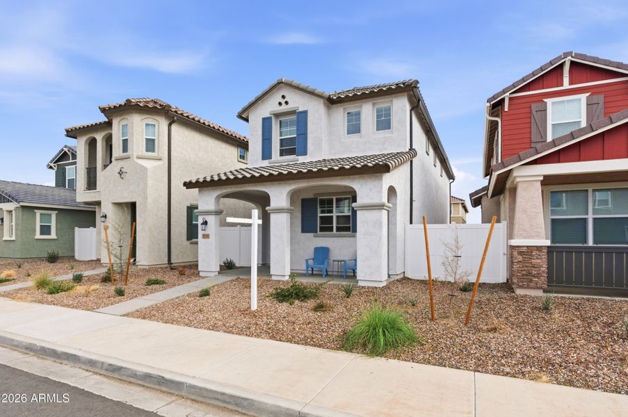 Welcome to this stunning, nearly-new home in the premier Reflection community. This meticulously designed ''Lucia'' floor plan offers the perfect blend of style and functionality. The main floor features an open concept great room where the kitchen, dining, and family areas flow seamlessly, ideal for hosting Sunday brunch or keeping an eye on the kids. Upstairs, find a versatile loft, alongside three spacious bedrooms, including a luxury owner's suite with a private en-suite and walk-in closet. Low-maintenance outdoor patio complete with pavers and artificial turf. Enjoy the perks of a master-planned community with access to a community pool, pickleball courts, and playgrounds, all within the top-rated Gilbert Public Schools district **HOA includes wifi services and front yard landscape.