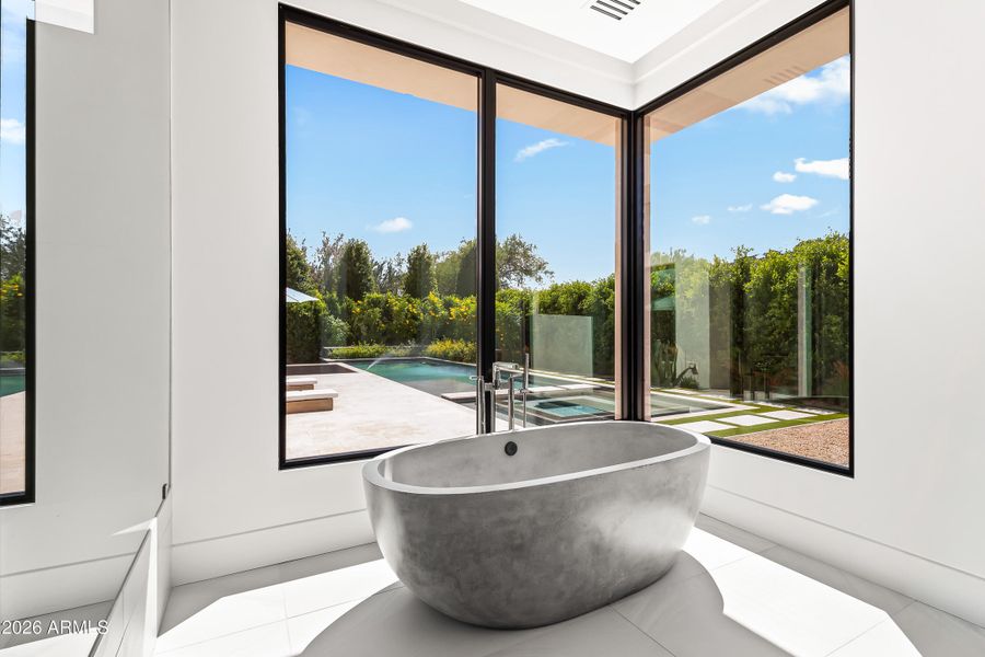Positioned along one of Paradise Valley's most prestigious enclaves, this privately gated 1.1-acre estate showcases uninterrupted panoramic views of Camelback Mountain, including the iconic Praying Monk. Designed to maximize natural light, volume, and seamless indoor-outdoor living, the residence offers a refined blend of modern elegance and resort-style amenities. The main home features five spacious bedrooms, 5.5 bathrooms, and a versatile bonus room ideal for a home office, gym, or studio. A detached guest house provides two bedrooms, 2.5 bathrooms, a full kitchen, and private laundry--perfect for extended stays or hosting with complete independence. Inside, soaring ceilings, expansive walls of glass, and wide-plank oak flooring create a bright, open atmosphere. The great room serves as the centerpiece, highlighted by dramatic sliding glass doors and a sleek marble fireplace, effortlessly connecting to the outdoor living spaces. The open-concept kitchen, dining, and living areas are designed for both everyday living and elevated entertaining. The chef's kitchen is equipped with premium Wolf and Sub-Zero appliances, a gas range, dual ovens and dishwashers, built-in coffee and ice makers, and a striking climate-controlled wine wall. The primary suite offers a serene retreat with tranquil views and private access to the backyard, along with a spa-inspired bathroom featuring a sculptural stone soaking tub, oversized steam shower, dual vanities, custom wood cabinetry with abundant storage, and a private water closet. Outdoors, the showstopping custom pool and spa include an extended lap lane, surrounded by multiple lounging and dining areas, fire features, and a covered steel-and-wood patio with a fully equipped outdoor kitchen. Added amenities include a pickleball court and putting green. Additional highlights include a six-car garage and a prime location just minutes from Arizona's premier resorts, spas, fine dining, and shopping.