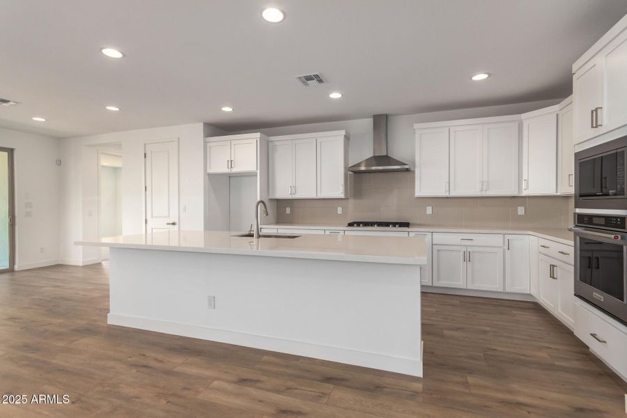 Welcome to this beautifully designed 4-bedroom, 3-bathroom home offering 2,406 square feet of generous living space—all on one convenient level. This open floor plan seamlessly blends functionality with style, perfect for both everyday living and entertaining. The heart of the home is the gourmet kitchen, featuring stainless steel appliances including a gas cooktop, a massive center island with elegant Quartz countertops, stylish tile backsplash, and upgraded urban-style cabinetry with sleek hardware. A spacious walk-in pantry and laundry room with built-in cabinets provide added convenience. The primary suite is a luxurious retreat with a spa-inspired bathroom showcasing a glass-enclosed shower and custom mosaic tile flooring. Enjoy year-round indoor-outdoor living... with a covered patio and a flat backyard that serves as a blank canvas for creating your dream outdoor space whether that's a pool, garden, or outdoor kitchen. Don't miss the chance to make this stylish, move-in-ready home your own.