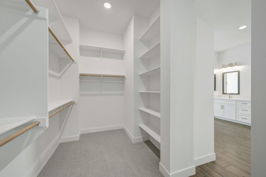 The Owner’s Retreat serves as a spa-inspired sanctuary, complete with a freestanding soaking tub and tiled shower, complemented by designer flooring, elegant finishes, and carefully considered lighting throughout the home.