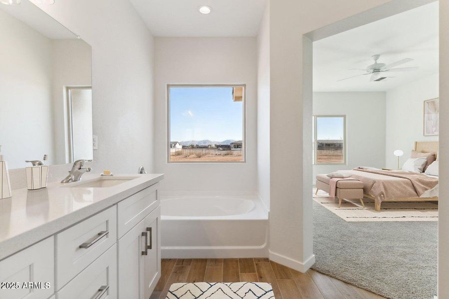 New Build with NO HOA! This beautiful modern desert home includes 1,651 SQFT, 3 Bed 2 baths, Oversize 3 car garage, fully fenced property with Wrought Iron No Climb Horse fencing, open floor plan & kitchen, white quartz counter tops, upgraded stainless steel appliances, shaker style cabinets, Estimated completion date is July 2025