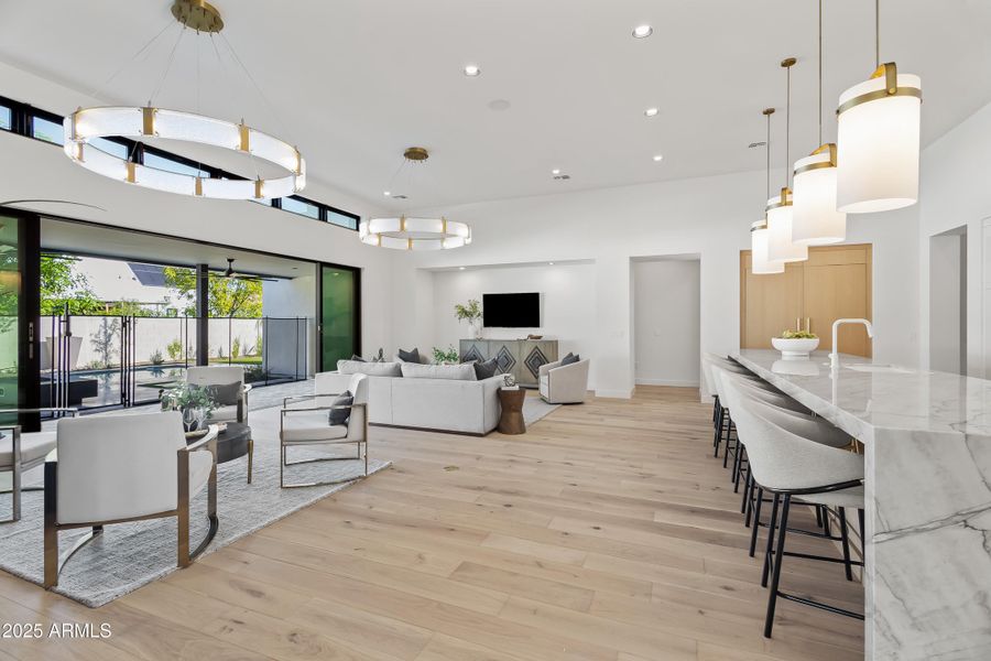 Welcome to modern luxury living in the exclusive Willow gated enclave of just 14 homes. This exceptional 6-bed, 6.5-bath residence offers an impressive blend of contemporary design, thoughtful functionality, and premium upgrades — including a full attached casita, finished basement, and a custom resort-style backyard. The main level features an open-concept great room with a full wall of sliders, flooding the space with natural light and creating seamless indoor/outdoor living. A sleek fireplace, custom kitchen cabinetry, spacious pantry, and a dedicated formal dining room elevate the heart of the home. Additional main-floor spaces include a den/office and a versatile bonus room. Retreat to the luxurious primary suite, offering dual vanities, two walk-in closets, an oversized walk-in shower, separate soaking tub, and private water closet. The fully finished basement adds incredible flexibility with two additional ensuite bedrooms and a large bonus room ideal for a media room, gym, or play space. The attached casita with its own entrance is perfect for guests, multigenerational living, or an office suite. Step outside to your private desert oasis. The upgraded backyard includes a custom heated pool and spa, covered patio, fire pit, brand-new turf, mature trees, citrus trees, potted plants, shrubs, and curated desert landscaping all designed for year-round enjoyment. Rare to find a home that combines size, luxury, and modern amenities within such an intimate gated community. This is a must-see new build in the heart of North Central Phoenix.