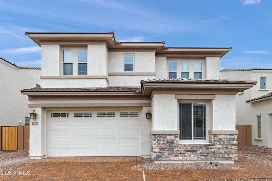 New Construction - Ready Now! Built by America's Most Trusted Homebuilder. Welcome to The Azelia at 25127 N 75th Lane in Aloravita South Discovery Collection offers 3,455 square feet of thoughtfully designed two-story living. This bright layout features 4 bedrooms, 3 bathrooms, a 2-car garage, and a formal dining area perfect for hosting. Just off the foyer, a hallway leads to a secondary bedroom and full bath, while the main corridor opens to a spacious kitchen, casual dining area, and great room—ideal for gathering and everyday living. A covered patio offers a relaxing outdoor escape in the beautiful Arizona sunshine. Upstairs, you'll find two more bedrooms, a full bath, and the serene primary suite with dual sinks, a large walk-in closet, and plenty of privacy. MLS#6883068