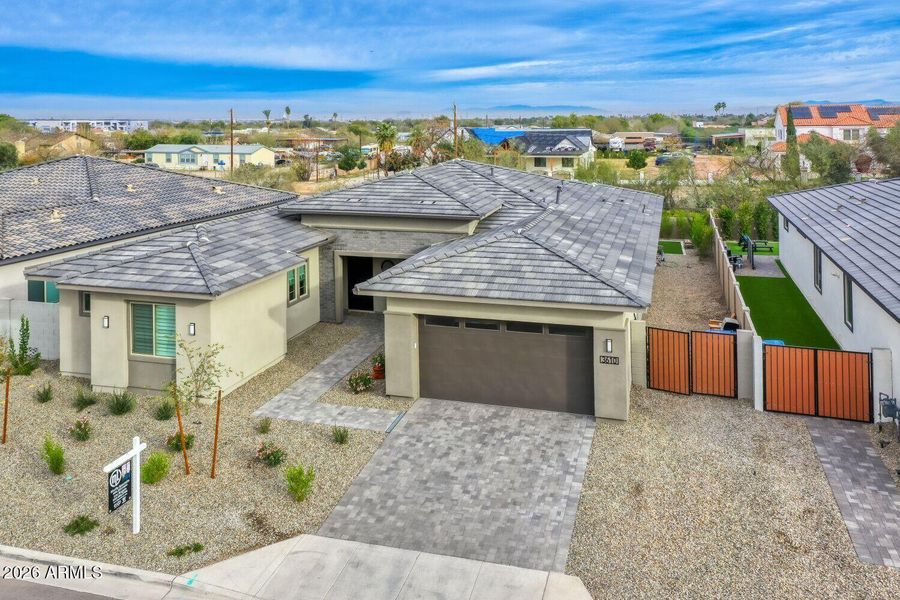 Stunning 2025 New Build in Whispering Hills Gated Community with Mountain Views. Welcome to this exceptional brand-new 2025 build located in the highly desirable Whispering Hills Gated Community, offering privacy, modern luxury, and effortless living. Enjoy breathtaking mountain views and a striking custom iron front door that creates an unforgettable first impression. Inside, the home is filled with upscale upgrades, including designer fans and statement light fixtures, custom wood shutters throughout, and smart-light capability for modern convenience. Built with efficiency in mind, the home features energy-efficient systems and a tankless hot water heater, delivering comfort and long-term savings. The three-car tandem garage provides flexible space for vehicles, storage, or a workshop. Step outside to a fully completed backyard, a rare advantage in new construction. Skip the time, cost, and uncertainty of landscaping and enjoy an extended patio and low-maintenance artificial turf -perfect for entertaining or relaxing year-round. This home offers all the benefits of new construction without the added price, delays, or post-build worries. The lifestyle is further enhanced by proximity to Aguila Golf Course, an 18-hole championship course set at the base of South Mountain, featuring scenic mountain views and three lakes that come into play on five holes. Nearby parks and a tranquil lake complete the outdoor lifestyle. A rare opportunity to own a turnkey, luxury new build in a gated community. This one truly stands out.