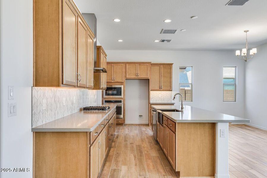 New Construction ~ Ready Now! Built by America's Most Trusted Homebuilder. Welcome to the Octave at 18154 W Amberwood Drive in CantaMia at Estrella 55+. This thoughtfully designed new home features a spacious kitchen with a center island that flows into the dining area and great room. Step through sliding glass doors to a covered outdoor living space—perfect for relaxing or entertaining. The private primary suite offers a spa-like en-suite and large walk-in closet, while a secondary bedroom, full bath, and flex room provide comfort and versatility. Life at CantaMia means access to resort-style amenities including a clubhouse, fitness center, sparkling pool, scenic lake, and pickleball courtsmaking it easy to stay active and connected. Come home to comfort, connection, and carefree living at CantaMia at Estrella. Additional Highlights Include: Paver front porch, upgraded appliances. MLS#6895285