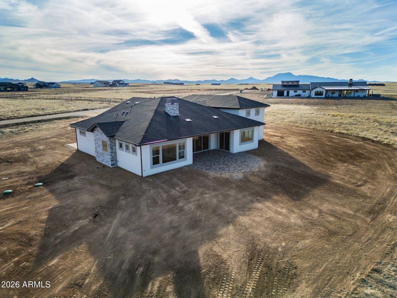 Finely appointed 2,324 sq. ft. home situated on a spacious 4-AC lot with excellent views. Features include 10' Ceilings, 400 Amp Electrical panel, spray foam insulation with ERV, quartz countertops, custom cabinetry, Bosch stainless steel appliances, tile flooring throughout. Open concept layout with excellent curb appeal. The home offers a tankless water heater, upgraded finishes such as board and batten in dining room and foyer. RV and car enthusiasts will appreciate the large RV garage with full hookups. Excellent well production. Home is move-in ready.