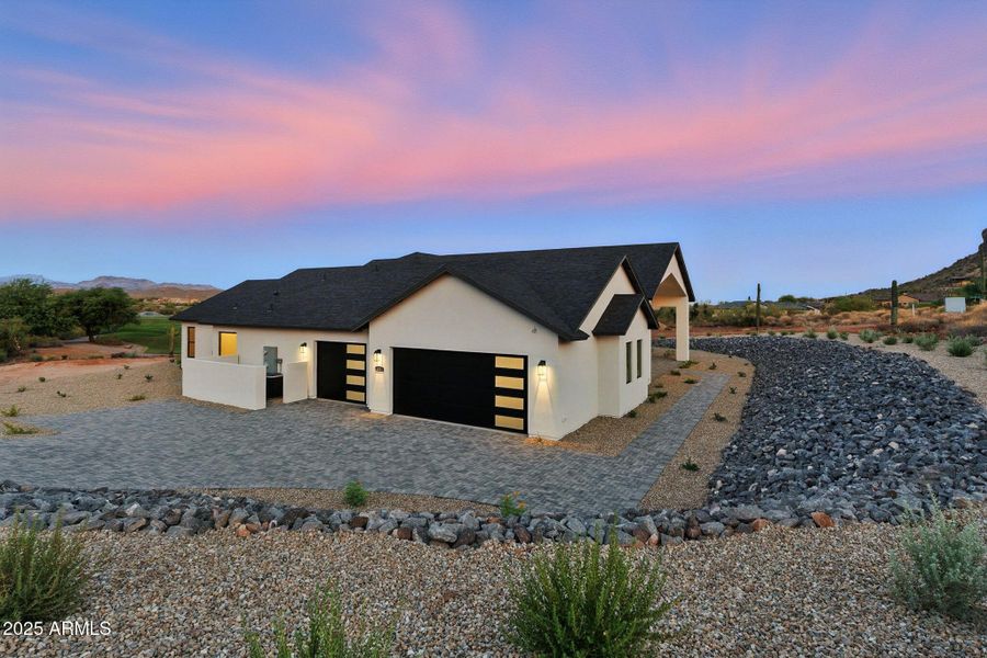 Welcome to Montana Dorada in Gold Canyon Arizona. This incredible luxury new build positioned on a phenomenal corner lot features amazing views of the 9th hole at Dinasour Mountain Golf Course and is surrounded by the iconic Superstition Mountains, complete with a water view. Offering vast open spaces, just minutes from the US 60, complete with breathtaking views at every angle. This stunning home built with modern elegance, timeless style, soft earthy tones, and luxury quality has so much to offer. With over 4258 livable square feet, this home features 3 bedrooms all with ensuites and walk-in closets, plus a den. The split floorplan offers a massive great room, open concept living, with perfectly positioned spaces. An entertainers dream while still perfect for quiet luxurious comfort. This stunning home has a large walk-in butler's pantry with built in wine cooler, oversized 3 car garage, high end appliances, guest 1/2 bath, premium wood plank flooring, amazing laundry space, ample storage, stunning entry, beautiful finishes, and a massive owners suite. With over 7000 Sf under roof. Enjoy an oversized patio, and endless opportunity to dream big and design perfectly tailored outdoor living. With space for a negative edge pool cascading down to a fairway view, and a side yard space large enough for a pickleball court. The opportunities are truly endless with this amazing one-of-a-kind lot. This home is truly breathtaking in every way.