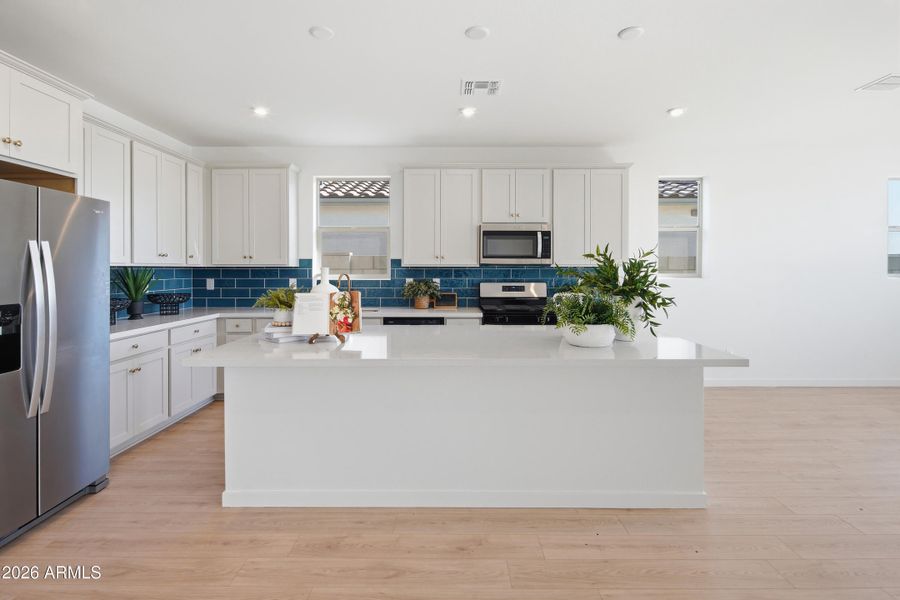 Welcome to this beautiful single-story home located in the heart of Buckeye. This stunning new construction home features 3 bedrooms, study and 2.5 bathrooms, offering ample space for comfortable living. The 2392 sq ft layout includes a spacious great room, a modern kitchen with 42'' upper cabs, quartz counters, and stainless-steel appliances including a refrigerator. The primary suite boasts a large closet while the additional bedrooms provide plenty of room for family or guest. Additional highlights 9- foot ceilings with 8-foot 2 panel interior doors. laminated flooring throughout, with tile in the bathrooms, mud room and laundry. Carpet in bedrooms. Located in the desirable Montana Vista. INCLUDED OWNED SOLAR.