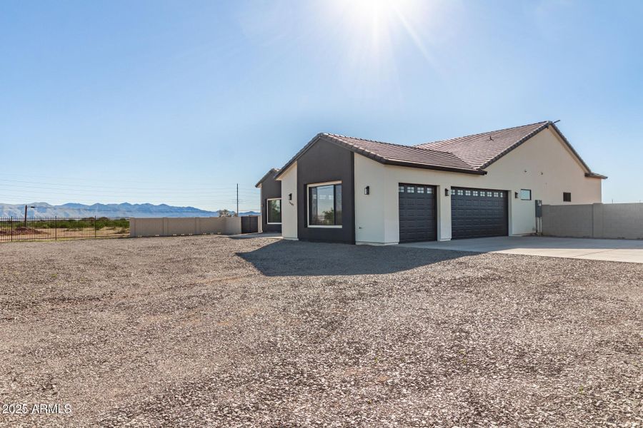 Fantastic opportunity to own this newly constructed home on a sprawling 1-acre lot! This fully-fenced property welcomes you with breathtaking mountain views, a 3-car garage, an 2 RV gates, a low-maintenance yard, and an inviting front patio. Fall in love with the captivating open layout with soaring vaulted ceilings, recessed lighting, a soothing palette, attractive wood-look flooring, and a dry bar for entertaining. The stunning kitchen features quartz counters with a matching backsplash, crisp white cabinetry, chic pendant lighting, stainless steel appliances, and a large island with a breakfast bar for casual dining. The primary bedroom boasts sliding door access to the backyard, an ensuite with double sinks, and a spacious walk-in closet for an organized wardrobe.