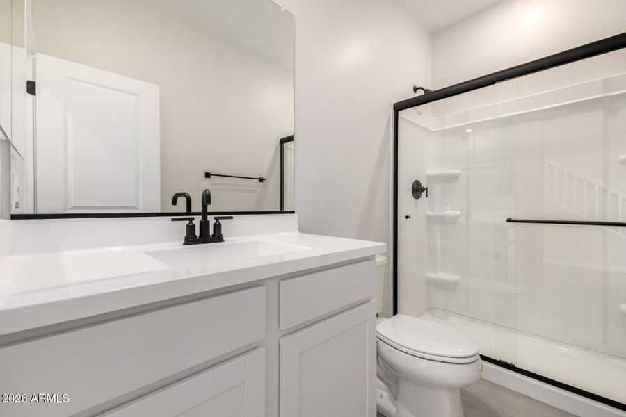 FINAL OPPORTUNITY to buy in the Solvida community. Seller is offering below market financing. Corner home. The front of the home faces the enormous green space. 4 bedroom, 3 bath home with first floor bedroom and full bathroom. Open concept kitchen and living space with dining room and tile throughout. Large open loft with 2 additional guest bedrooms and bathroom. Upstairs laundry with laundry sink pre-plumb. Large primary bedroom, large walk-in closest and dual vanities in primary bathroom. Enjoy luxurious resort style living in the award-winning Estrella Master planned community.