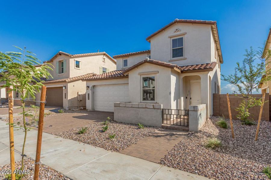Discover this beautifully designed brand-new home in the heart of Queen Creek, offering 3 spacious bedrooms, 2.5 baths, and a versatile 3-car tandem garage. Thoughtfully crafted with modern living in mind, the open-concept floorplan features a bright and inviting great room, perfect for family gatherings and entertaining. The gourmet kitchen boasts upgraded cabinetry, stainless steel appliances, a large island with seating, and plenty of storage for the home chef. The primary suite provides a private retreat with a spa-inspired bath, dual vanities, and a generous walk-in closet. Secondary bedrooms are well-sized, offering flexibility for guests, a home office, or hobbies. Additional highlights include energy-efficient construction, designer finishes throughout, and low-maintenance landscaping. Located in a desirable community, residents enjoy well-kept surroundings and nearby parks, schools, shopping, and dining. This move-in ready home combines style, function, and convenienceready to welcome its first owner.