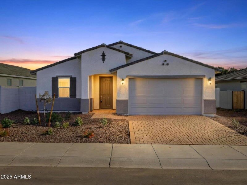 Spacious, Single-Story Living with Smart Design! The Onyx offers a versatile split 4-bedroom layout, providing both privacy and flexibility for today's lifestyles. Bedroom 4 includes its own private bath, making it perfect for guests, multigenerational living, or a private retreat. Designed for comfort and convenience, the Onyx is where thoughtful design meets everyday functionality. This home has white cabinets with hardware, quartz kitchen counters, wood-look tile flooring and carpet in the bedrooms! INCLUDED - washer, dryer, window blinds, refrigerator and MORE! Residents ENJOY parks, a tot lot, basketball court, ramadas and MORE! Each home is built with innovative, energy-efficient features designed to help you ENJOY more SAVINGS!