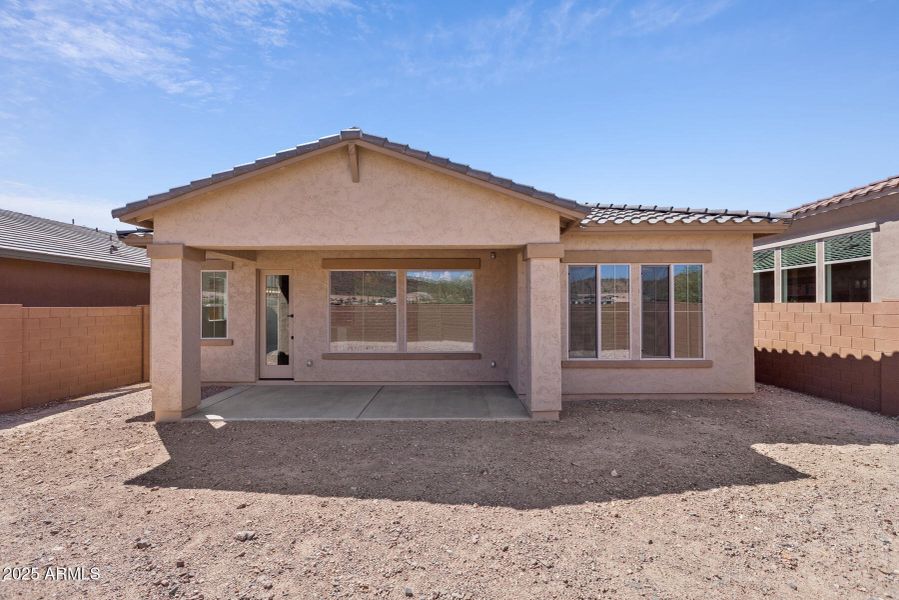 GORGEOUS BRAND NEW 4 BED, 3 BATH SINGLE LEVEL plan with study and 3 car garage; guest suite includes walk-in shower ILO tub/shower; owner's suite also has a huge walk-in tiled super shower; extended outdoor living space with direct access to family room; gourmet kitchen with 2-tone cabinets, clean quartz countertops on huge island and gorgeous tiled backsplash; GE stainless steel refrigerator, gas cooktop and wall over/microwave; home backs to open space; large energy efficient windows, 8' doors and tons of upgrades throughout; 2x6 construction and extensive new home warranty.