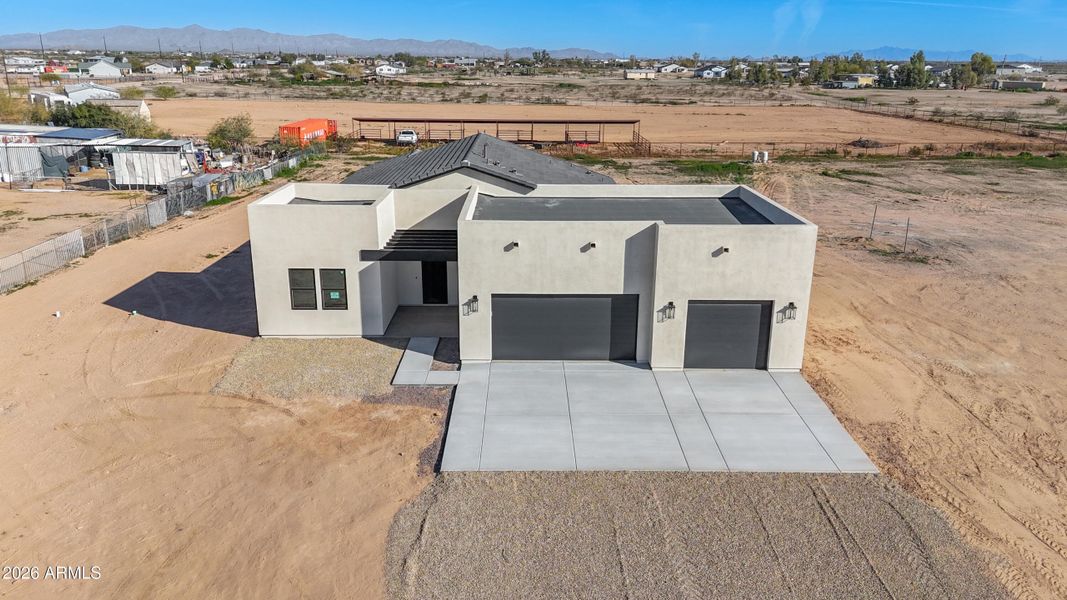 Great location. Newly Built Horse Property on 1+ Acre with Mountain Views & No HOA. Welcome to your dream home. Featuring 4 bedrooms, 3 full baths, and 3-car garage insulated doors , the open floor plan boasts 10' ceilings, 8ft doors, a generous dining and Living area, and plenty space to entertain. The kitchen showcases white cabinets and elegant kitchen island waterfall countertop. Luxury vinyl plank flooring with double underlayment flows throughout the home, while bathrooms feature ceramic tile finishes. Each bedroom is spacious, and the outdoor area includes a big covered patio-perfect for family gatherings or peaceful evenings. The backyard is a blank canvas ready for your dream outdoor space. Conveniently located near freeway& schools, in a growing area with future developmen