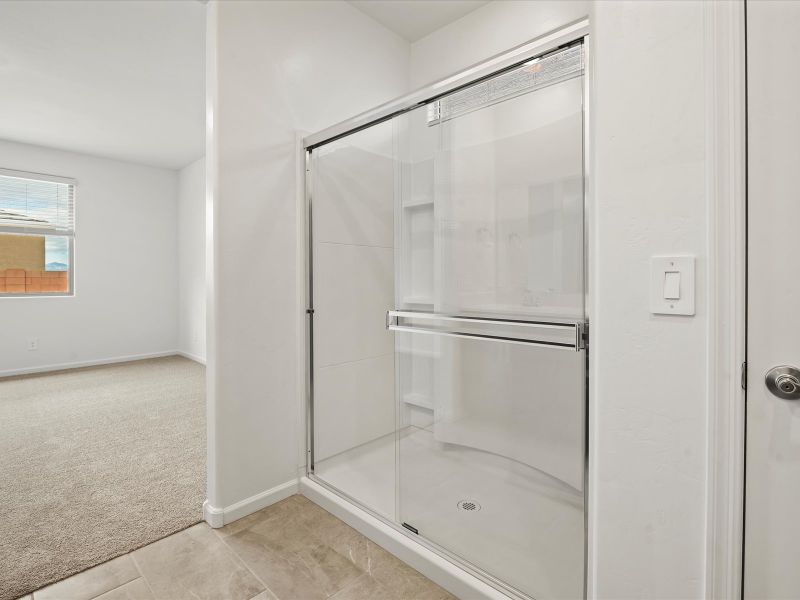 The Grayson Floorplan offers an open-concept layout perfect for entertaining. Pebble cabinets with white-toned quartz countertops, large grey tile flooring with neutral tan carpet in our Balanced package.