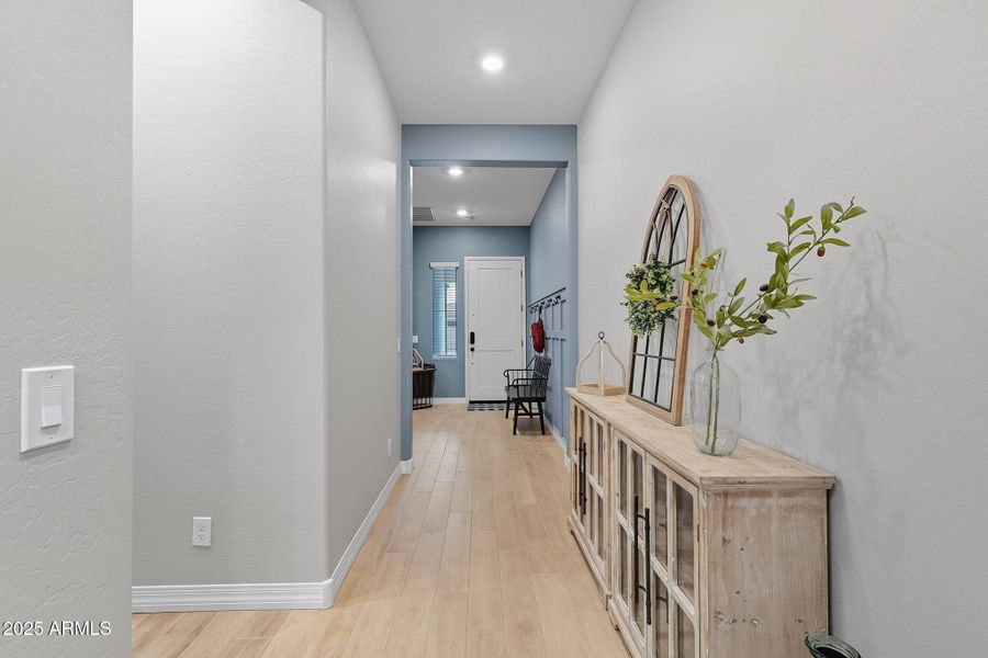 This fully upgraded Madera home offers 4 bedrooms, den, and 3 full baths. You'll love entertaining in this gourmet kitchen with stainless steel appliances, gas cooktop, custom backsplash and plenty of cabinet space. Wood-look plank tile flooring is throughout the home. French doors at the den make a perfect home office space. The 3 car garage is spotless with an epoxy finish and built in cabinets. The backyard offers turf grass and expanded stone pavers for easy maintenance. Enjoy all that the Madera community offers with quick access to east valley freeways and shopping. Book your tour today!