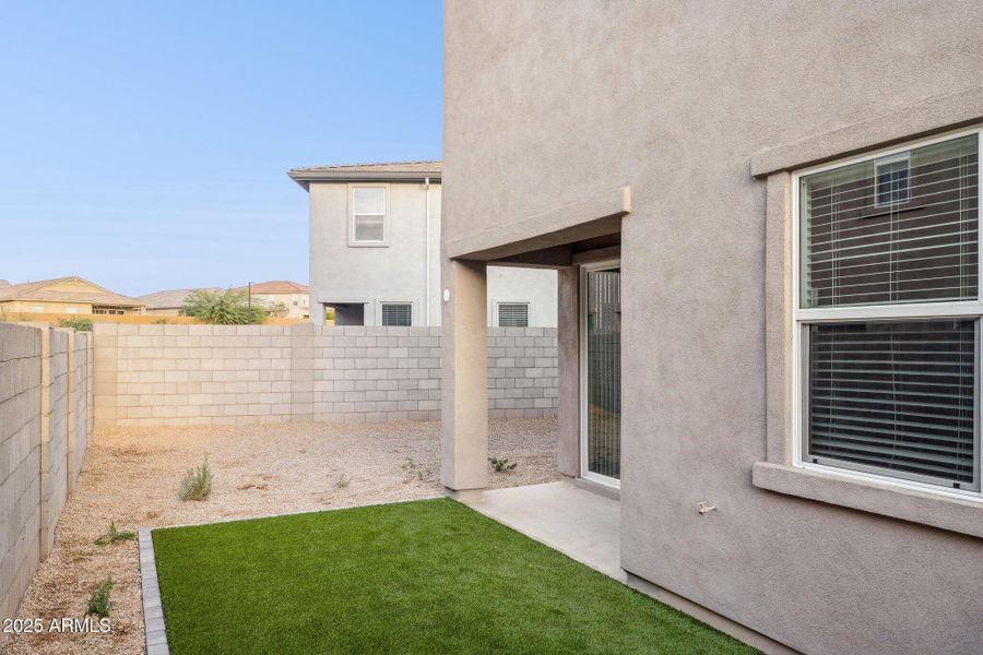 Spacious backyard-QMI. Final opportunity to own in this beautiful community, where modern design meets unbeatable convenience. This community is steps away from High Street, Desert Ridge, JW Marriott and more! Our popular 'Little Rock' floorplan includes 3 bedrooms with a loft, 2.5 bathrooms, 2-car garage, and a private yard with turf landscaping! Designer selected finishes include White Cabinetry w/Hardware, 3 CM Quartz Kitchen Countertops, Wood-Look Tile, and Plush Carpet in bedrooms. Features include 8' Doors, Under Cabinet Lighting in Kitchen, Smudge-proof Stainless Appliances, Blinds, Soft Water Pre-Plumb, Smart Home tech, and EV charger Pre-Wire in Garage. Photos of similar home-finishes may vary. Rate buy-down and closing cost incentive available with seller's preferred lender